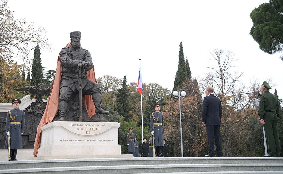 В Крыму Путин открыл памятник императору Александру III с саблей в руках