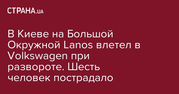 В Киеве на перекрестке Большой Окружной дороги и улицы Газопроводной два автомобиля попали в ДТП, пострадали шесть человек. Об этом сообщает dtp.kiev.ua на странице в Facebook.