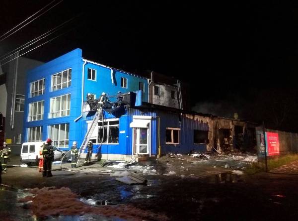 "Пожар возник в одноэтажном металлическом складском здании (с лакокрасочными изделими) размером 7х30 м, с угрозой распространения огня на рядом расположенное трехэтажное административное здание", – рассказали в ГосЧС.
