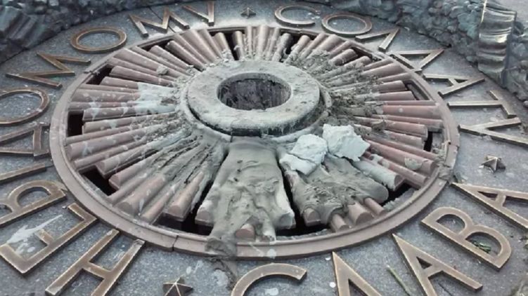 Как сообщала "Страна" впервые вандалы залили бетоном Вечный огонь 7 ноября. Серую смесь и разбросанные восемь ведер прохожие увидели утром и вызвали полицию.