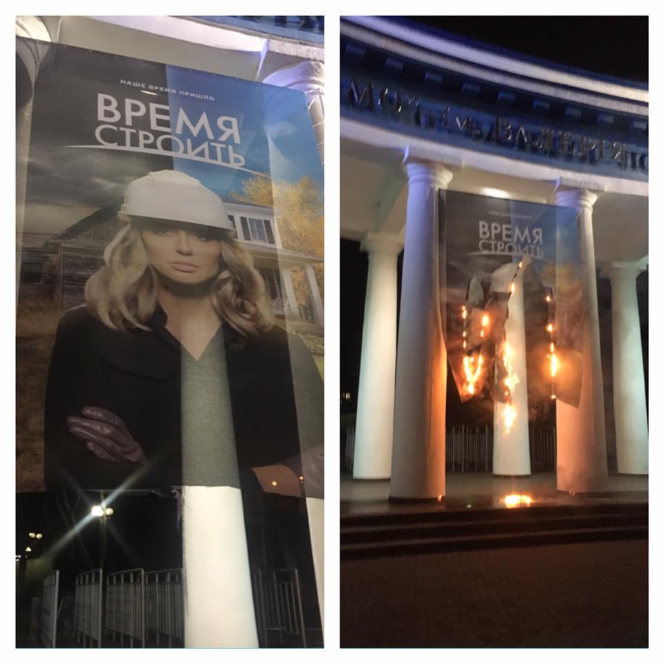 В Киеве ночью сожгли баннер с телеведущей у стадиона Лобановского