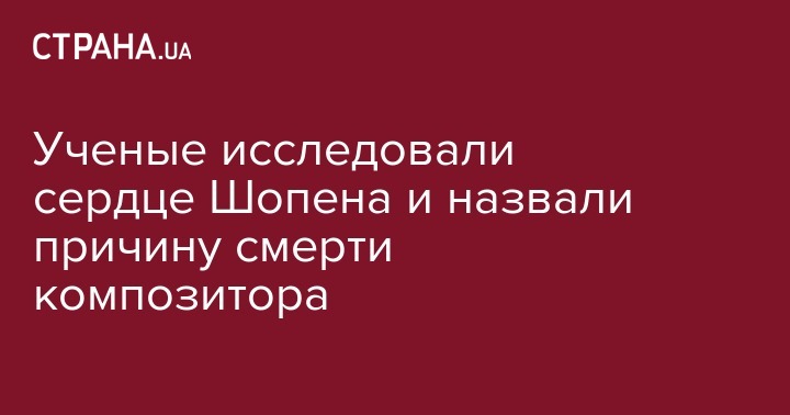 Польские медики изучили сердце Фредерика Шопена, которое хранится в Варшаве, и пришли к выводу, что знаменитый композитор, по-видимому, умер из-за перикардита (заболевания сердца), вызванного туберкулезом. Об этом пишет N+1.