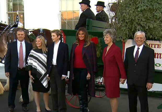 Супруга Дональда Трампа, экс-модель Мелания Трамп вместе с 11-летним сыном Бэрроном сходила за рождественской елкой, которая украсит Синюю комнату в Белом доме. Для выхода в свет первая леди США выбрала пальто от бренда Calvin Klein. Об этом сообщает Telegraf.
