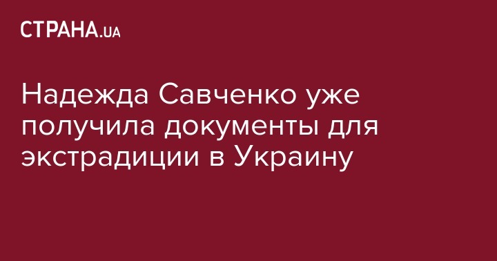 Надежда Савченко уже получила документы для экстрадиции в Украину