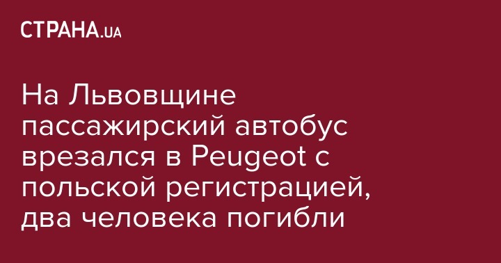 По сообщению полиции Львовской области, туристический автобус Setra столкнулся с легковушкой Peugeot с польской регистрацией. От удара погибли 48-летний водитель и 49-летняя пассажирка легковушки, еще два человека  из  Peugeot - в тяжелом состоянии. Их доставили в больницу. Полицейские устанавливают обстоятельства ДТП.