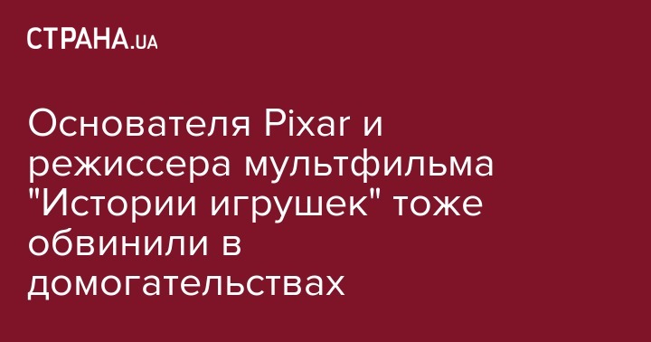 Основателя Pixar и режиссера мультфильма "Истории игрушек" тоже обвинили в домогательствах