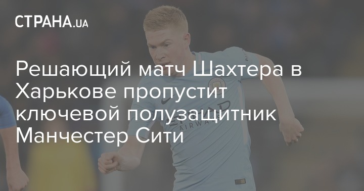 Атакующий полузащитник английского Манчестер Сити Кевин Де Брюйне пропустит матч 6-го тура группового турнира Лиги Чемпионов с Шахтером в Харькове. В предыдущем матче турнира против Фейеноорда конструктор атак клуба из Манчестера получил желтую карточку.