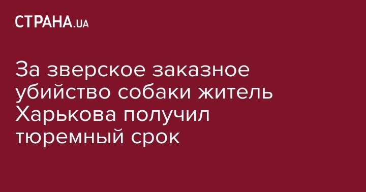 40-летнего харьковчанина, который заказал убийство собственной собаки, суд признал виновным в подстрекательстве и пособничестве в издевательстве над животным (ч. 4, 5 ст. 27, ч. 1 ст. 299 Уголовного кодекса) и назначил ему наказание - 3 месяца ареста.