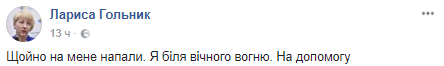 "Только что на меня напали. Я у вечного огня. На помощь", - написала она и опубликовала фото.