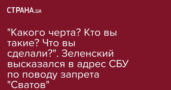 Какого черта вы что-то там вообще предлагаете? Кто вы такие? Что вы сделали? Если вы Служба безопасности Украины, то заботьтесь о безопасности страны, чтобы на улицу было свободна прийти и детям было не страшно. А от "Сватов" пока ни один человек не повесился", - заявил Зеленский.