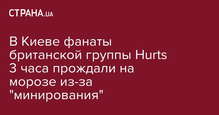 Украинские поклонники британской группы HURTS, которые пришли вчера на их концерт в Киеве, были вынуждены три часа ждать музыкантов на улице на морозе из-за "минирования" концертного зала Stereo Plaza. Об этом говорится в "ТСН".