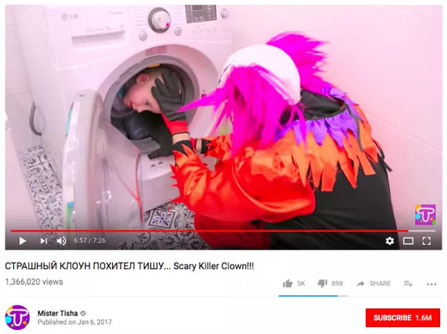 У канала "Мистер Тиша" было 1,6 миллиона подписчиков. Видеозаписи, где с мальчиком играют в зубного врача, угрожают выпороть или его похищает клоун, смотрели по 1-16 миллионов раз.