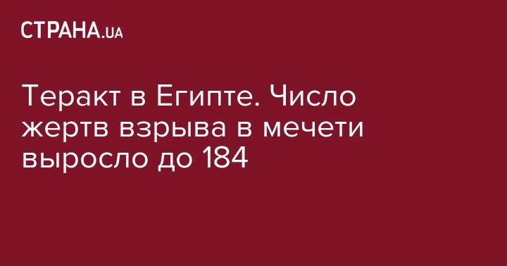 Число жертв теракта в египетской мечети на севере Синайского полуострова увеличилось до 184 человек.