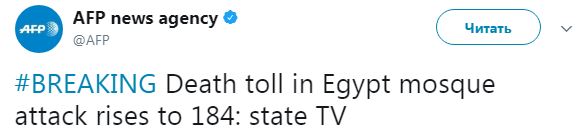 Теракт в Египте. Число жертв взрыва в мечети выросло до 184