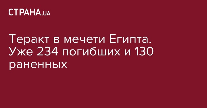 В Египте уже как минимум 234 погибших в результате теракта в мечети на севере Синайского полуострова. Ранее сообщалось о 184 погибших. Шокирующие цифры приводит AFP в Twitter.