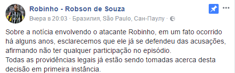 В Fаcebook футболиста сказано, что он "уже защищался от всех обвинений, утверждая, что не участвовал в этом инциденте".