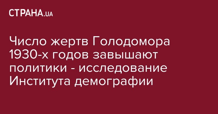 Институт демографии НАН Украины опубликовал число потерь населения Украины во время Голодомора в 1932-1934 годов. По оценкам ученых число погибших в СССР достигло 8,7 миллиона человек. Из них в Украине - 3,9 млн человек.