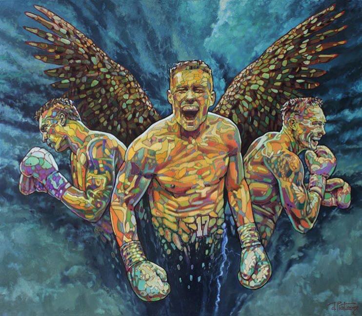 Знаменитый российский художник Александр Выгалов, автор техники полигональной живописи (стиль, в котором творчески синергирован метод трехмерного полигонального моделирования и приемы классической живописи - Прим.Ред.) написал портрет нашего чемпиона мира по версии WBO в тяжелом весе Александра Усика (13-0, 11 КО).