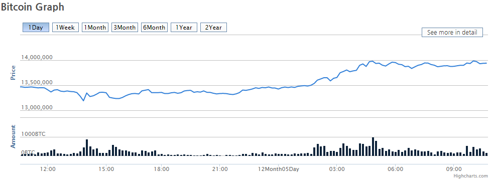 А вот на южно-корейской бирже криптовалют Bithumb биткоин уже несколько дней подряд рос в опережающем ритме. В среду, 29 декабря он здесь преодолел планку в 13 тысяч долларов.