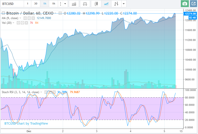 На сайте биржи Cex.io можно увидеть, что текущий курс биткоина тоже перевалил за следующую "тысячную" отметку и стоит 12 272 доллара.