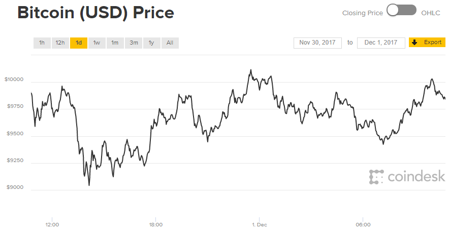 Корейцы еще в понедельник вечером первыми перешли рубикон стоимости биткоина, преодолев психологическую отметку в $10 000. Остальные мировые биржи держались в пределах 9800 +.