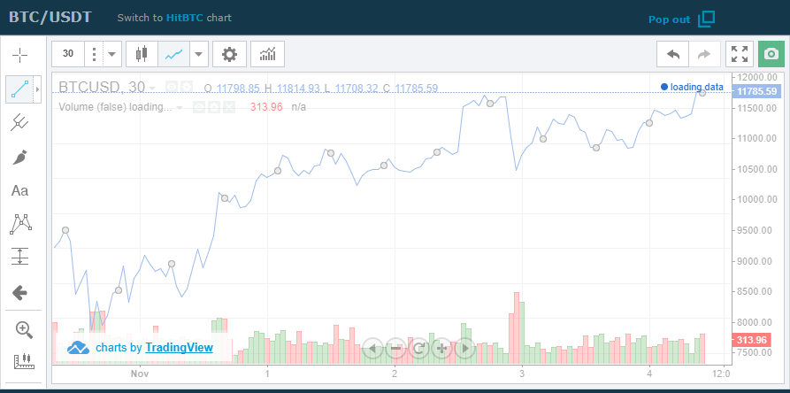 Биржа Hitbtc показывает, что биткоин вырос до 11 785 долларов.