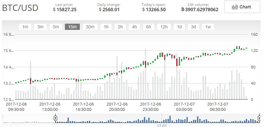 Биржа Cex.io дает последнюю цену за биткоин 15 827 долларов.