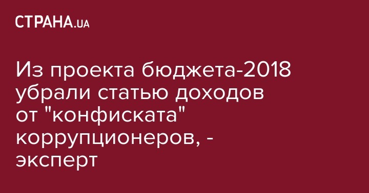 Из проекта бюджета-2018 убрали статью доходов от "конфиската" коррупционеров, - эксперт