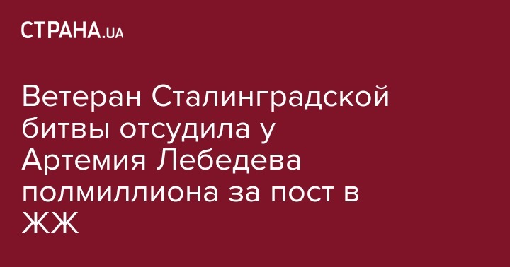 Иск подала ветеран Сталинградской битвы Марина Михалицына, сообщает "Интерфакс". Ее заявление было удовлетворено частично, поскольку изначально она поджала иск на 1 млн рублей. Суд также обязал Лебедева удалить порочащие честь и достоинство ветеранов материалы.