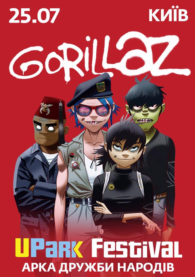 В Киев следующим летом приедет группа Gorillaz, которая выступит в рамках фестиваля Upark 25 июля. Об этом заявлено на странице uparkfestival в Facebook.