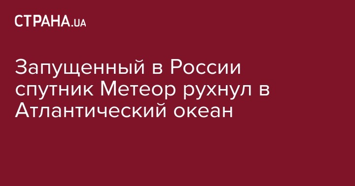 Запущенный в России спутник Метеор рухнул в Атлантический океан