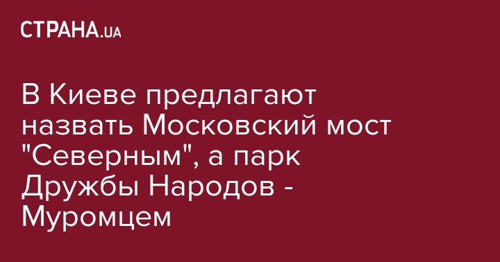 Члены комиссии Киеврады по вопросам культуры, туризма и информационной политики предложили переименовать Московский мост на "Северный", а парк Дружбы Народов на "Муромец".