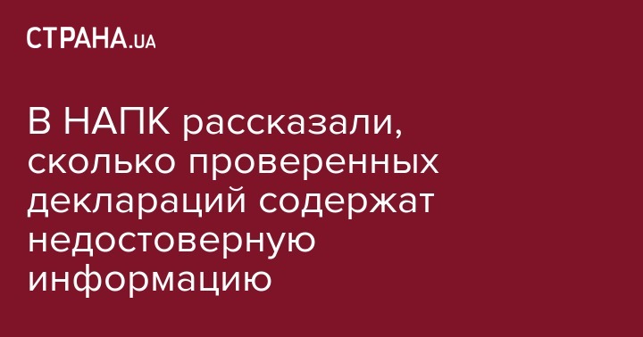 "По результатам 113 завершенных полных проверок Национальное агентство по предотвращению коррупции в каждой 14-й декларации лица, уполномоченного на выполнение функций государства или местного самоуправления, выявило признаки декларирования недостоверной информации", - указано в опубликованном сообщении.