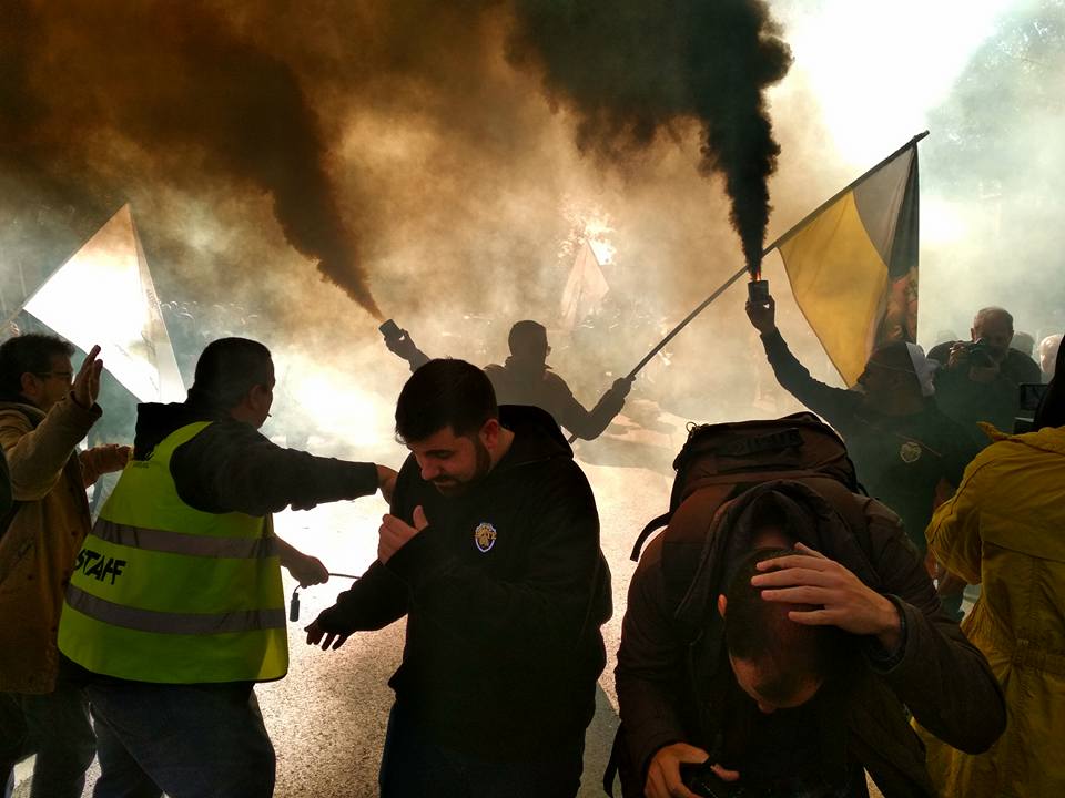 Люди вовсю используют петарды и файеры. На акции заявлено участие 20 тыс. человек.