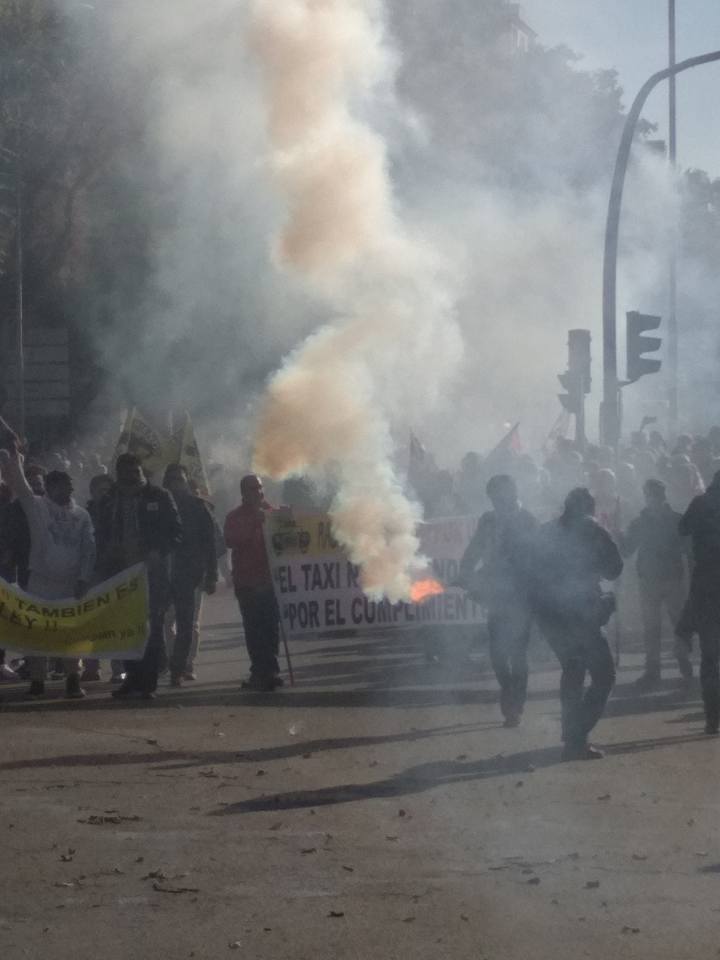 В Мадриде таксисты жгут файеры на многотысячном протесте против Uber. Фото