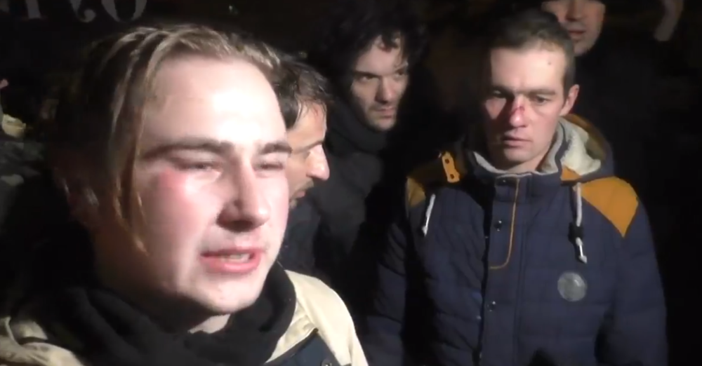 20:29 Мельниченко подтверждает, что конфликт между полицией и активистами начался после бросания снежков, на пересечении улиц Богомольца и Орлика.