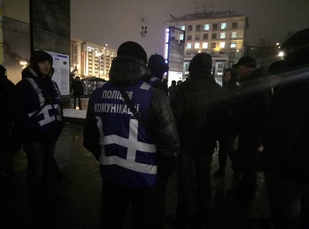 18:13 Рядом с небольшой группой майдановцев дежурит полиция. Она вызывает антипатию некоторых участников этого пока еще небольшого митинга. Интересуются: а не собирается полиция снова изымать палатки? Которых тут, впрочем, еще нет.