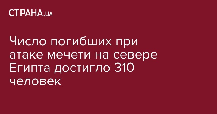 Количество погибших в результате атаки, совершенной террористами в конце прошлой недели на мечеть Эр-Рауда на севере Синайского полуострова, достигло 310.