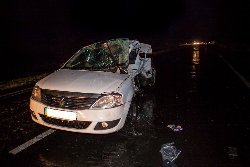По словам очевидцев, автомобиль Renault ехал по Полтавскому шоссе в сторону Днепра. Машина выехала на встречную полосу и столкнулась с грузовым микроавтобусом IVECO, перевозившем корма. Грузовик вылетел на обочину и перевернулся.