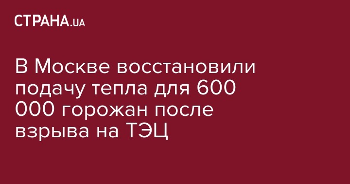 В Москве восстановили подачу тепла для 600 000 горожан после взрыва на ТЭЦ