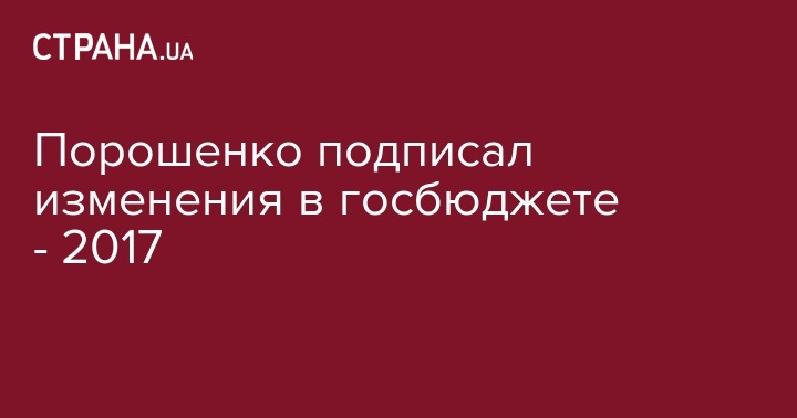В четверг, 30 ноября, Петр Порошенко подписал закон о внесении изменений в бюджет Украины на 2017 год. Об этом сообщает пресс-служба президента.