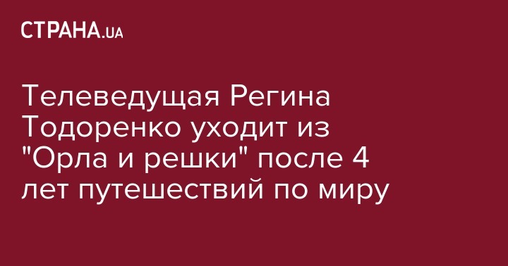 Популярная ведущая передачи "Орел и решка" Регина Тодоренко покидает проект спустя 4 года работы. Об этом она сообщила в Instagram.