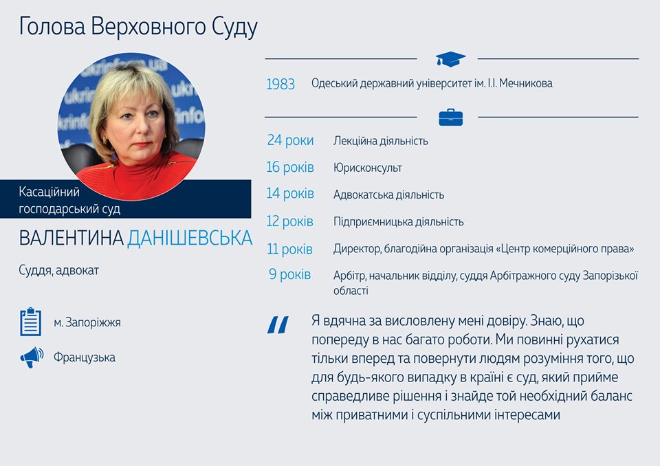 За ее кандидатуру проголосовали 67 из 111 судей на пленуме. Данишевская избрана главой суда сроком на 4 года.