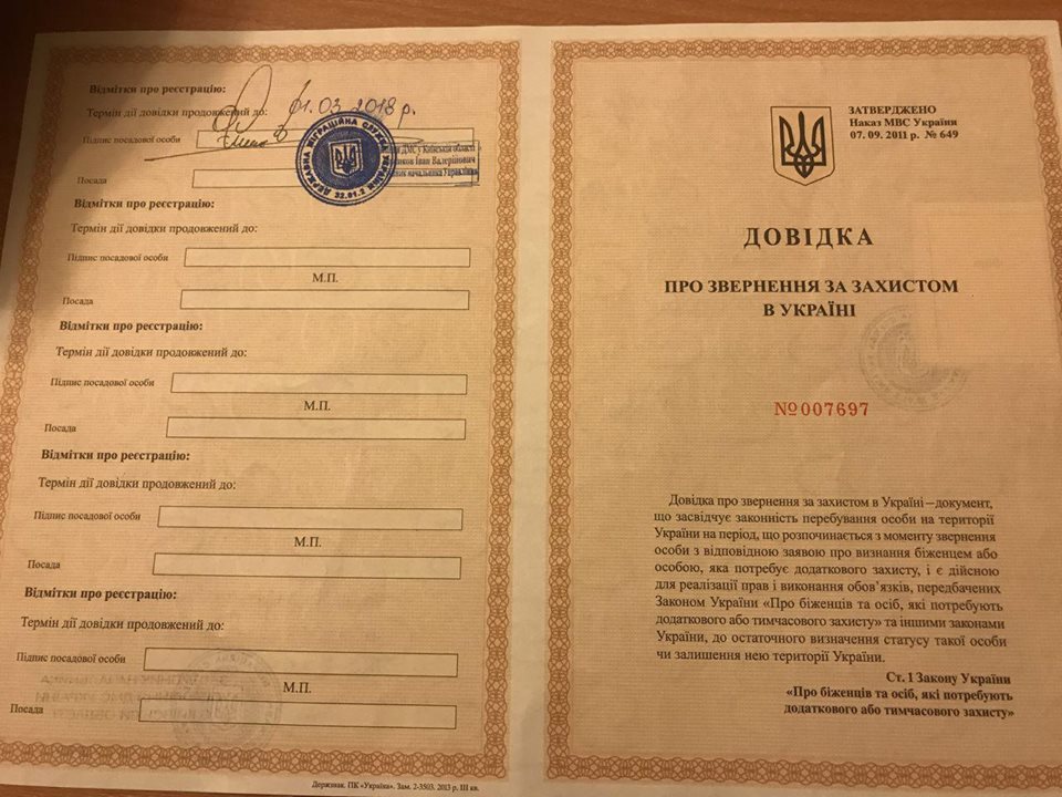 "Очень вежливые сотрудницы Миграционной службы выдали мне справку о продлении срока законного пребывания в Украине еще на три месяца, при этом даже любезно угостили чаем", - написал он в своей странице в соцсети Facebook в четверг.