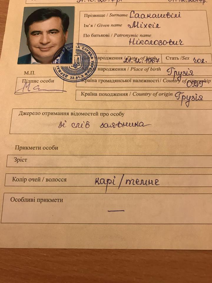 Лидер партии "Рух новых сил", экс-президент Грузии Михаил Саакашвили заявляет, что Миграционная служба Украины выдала ему справку о продлении законного срока пребывания, в Украине на 3 месяца.