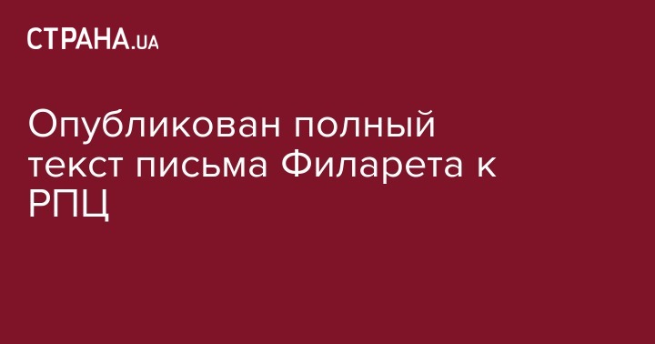 Пресс-секретарь УПЦ КП Евстратий Зоря опубликовал в Facebook текст письма патриарха Филарета патриарху Кириллу и епископату РПЦ.