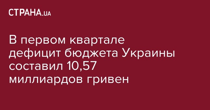В первом квартале дефицит бюджета Украины составил 10,57 миллиардов гривен