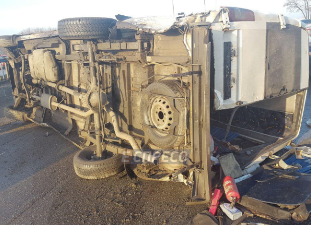От удара обе машины выбросило на встречную полосу, где маршрутка перевернулась, а Daewoo столкнулась с еще одним Mercedes.