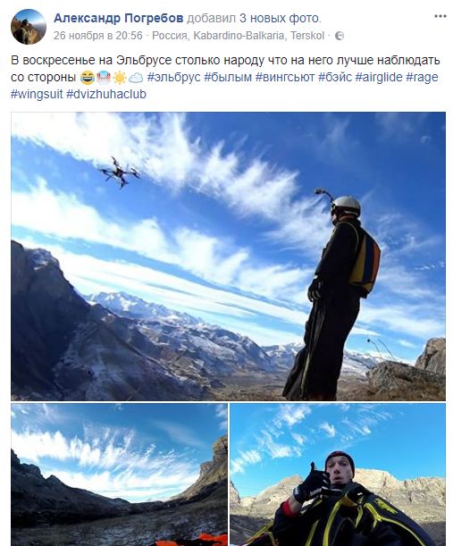 Еще 26 ноября Погребов постил фотографии в Facebook и писал: "На Эльбрусе столько народу,что на него лучше наблюдать со стороны". А уже 1 декабря в соцсети появилась информация о его гибели.
