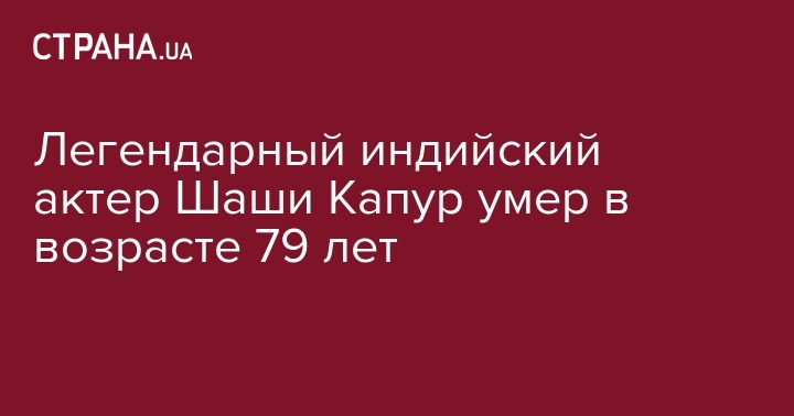 Легендарный индийский актер Шаши Капур умер после продолжительной болезни в возрасте 79 лет. Об этом сообщает Variety.
